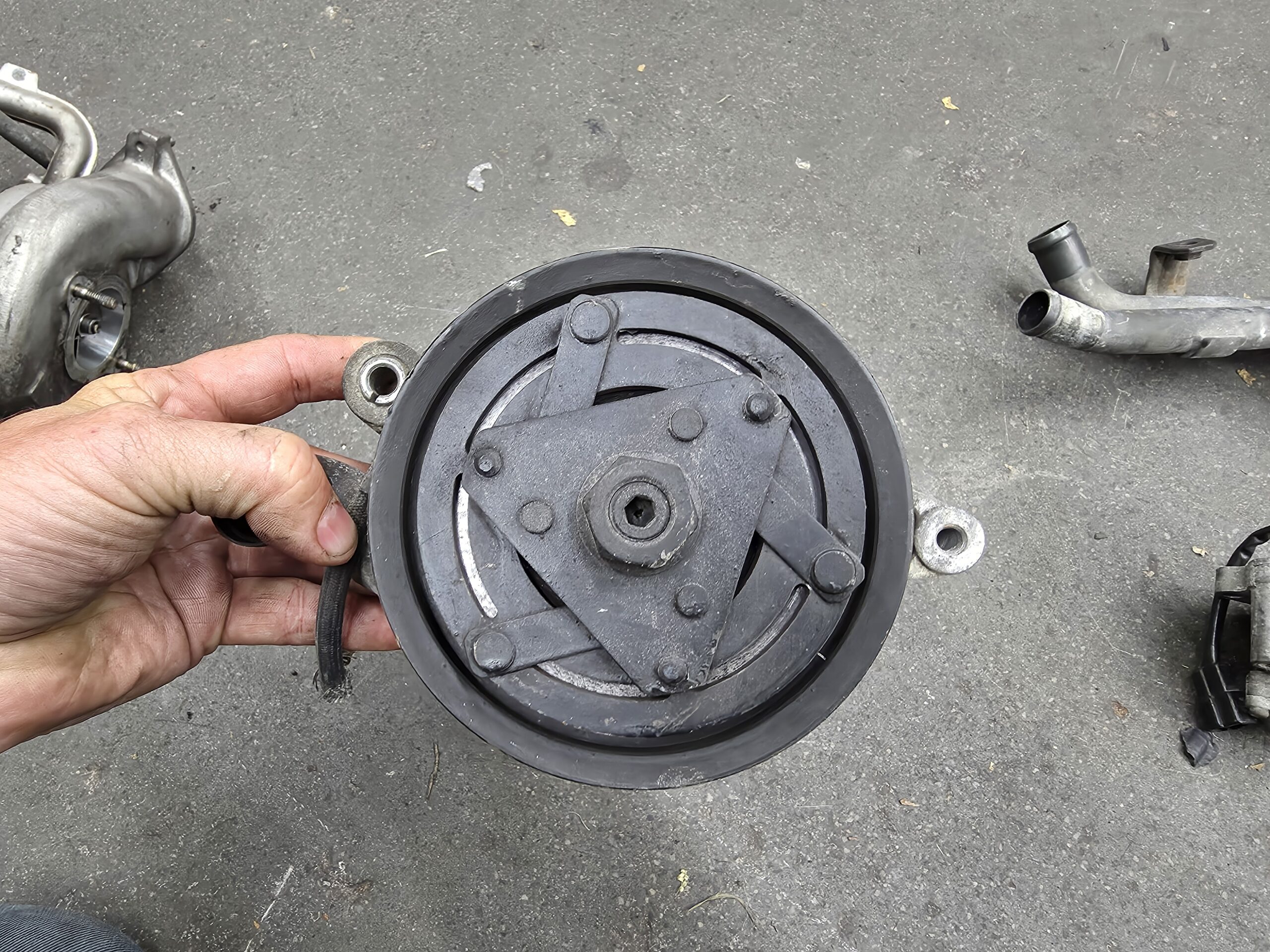 Came to me secondhand from a JDM engine. Pulley on the air pump spins normally. Electrical plug on the pump has been changed. There is a broken barb/pipe on the ACV but it could be repaired with a brass fitting or just capped off.
