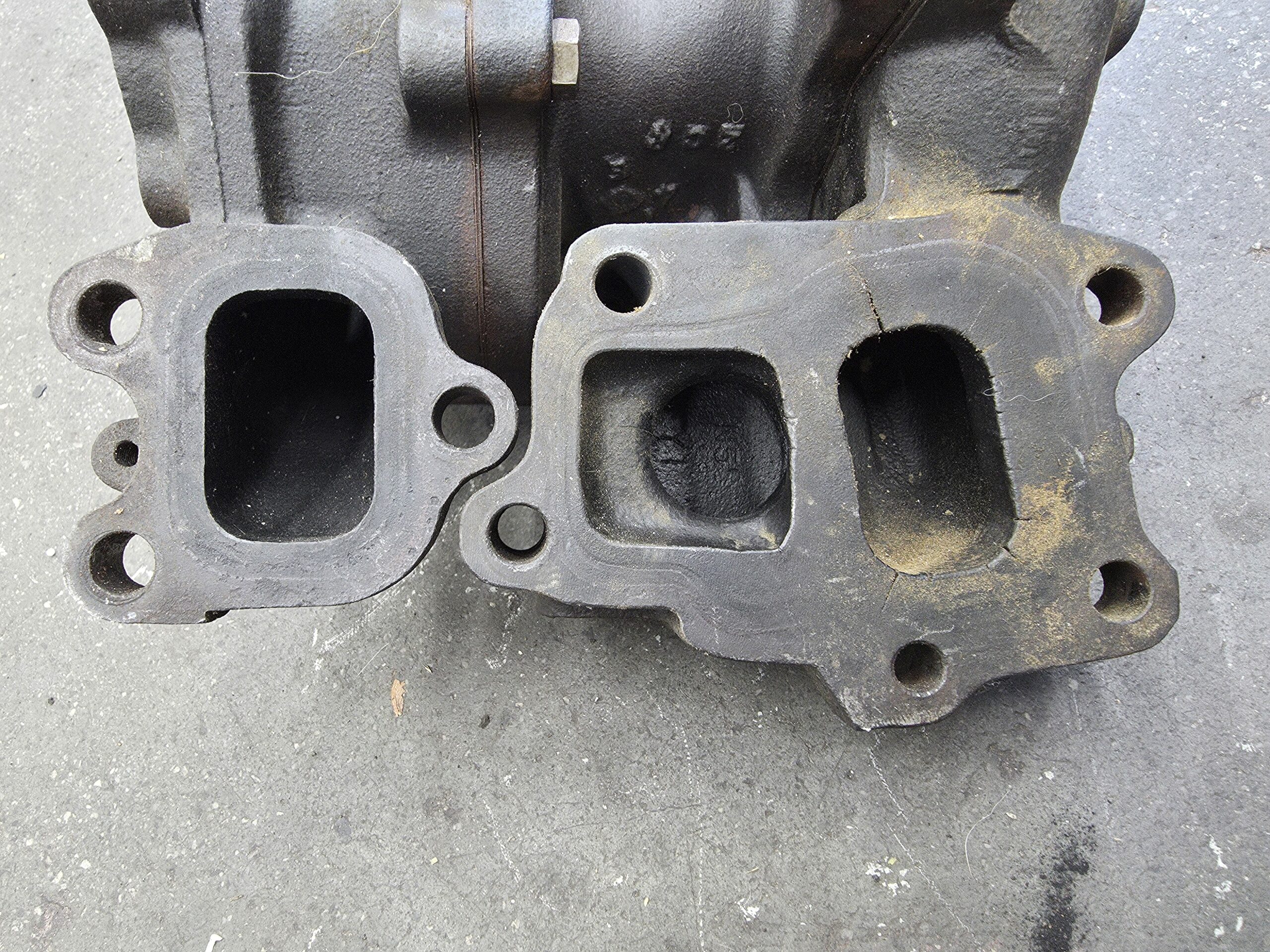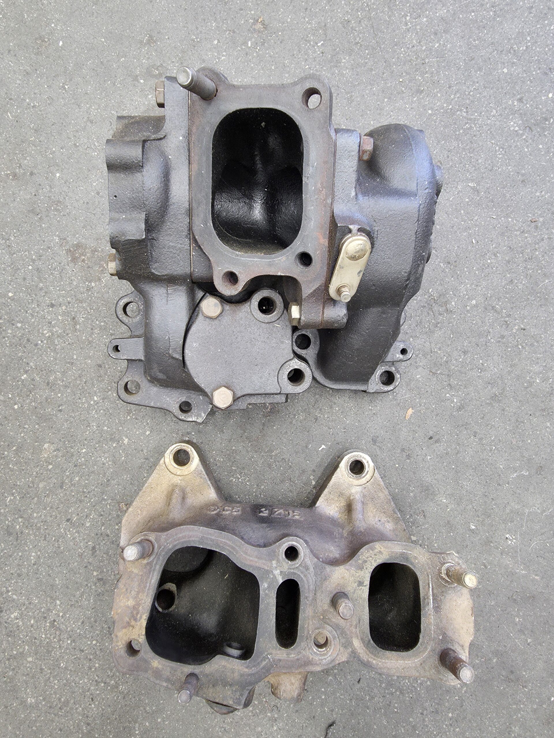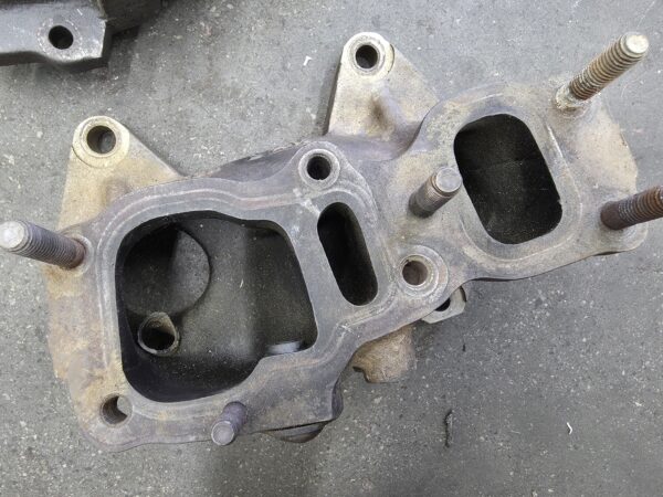 Came to me secondhand from a disassembled set of twins. I was told these cast hotside/turbine housings were from rebuilt twins that were only run a few hundred miles before the engine blew apex seals, they were disassembled to inspect turbine wheels. These housings are in above average condition with minor cracking. The manifold and housings have been converted to nonsequential/parallel operation (flappers cut out and plugged) which is why they are all being sold together. You can simply take your good CHRA/s and bolt them onto these hotsides, install plumbing and be ready to go.