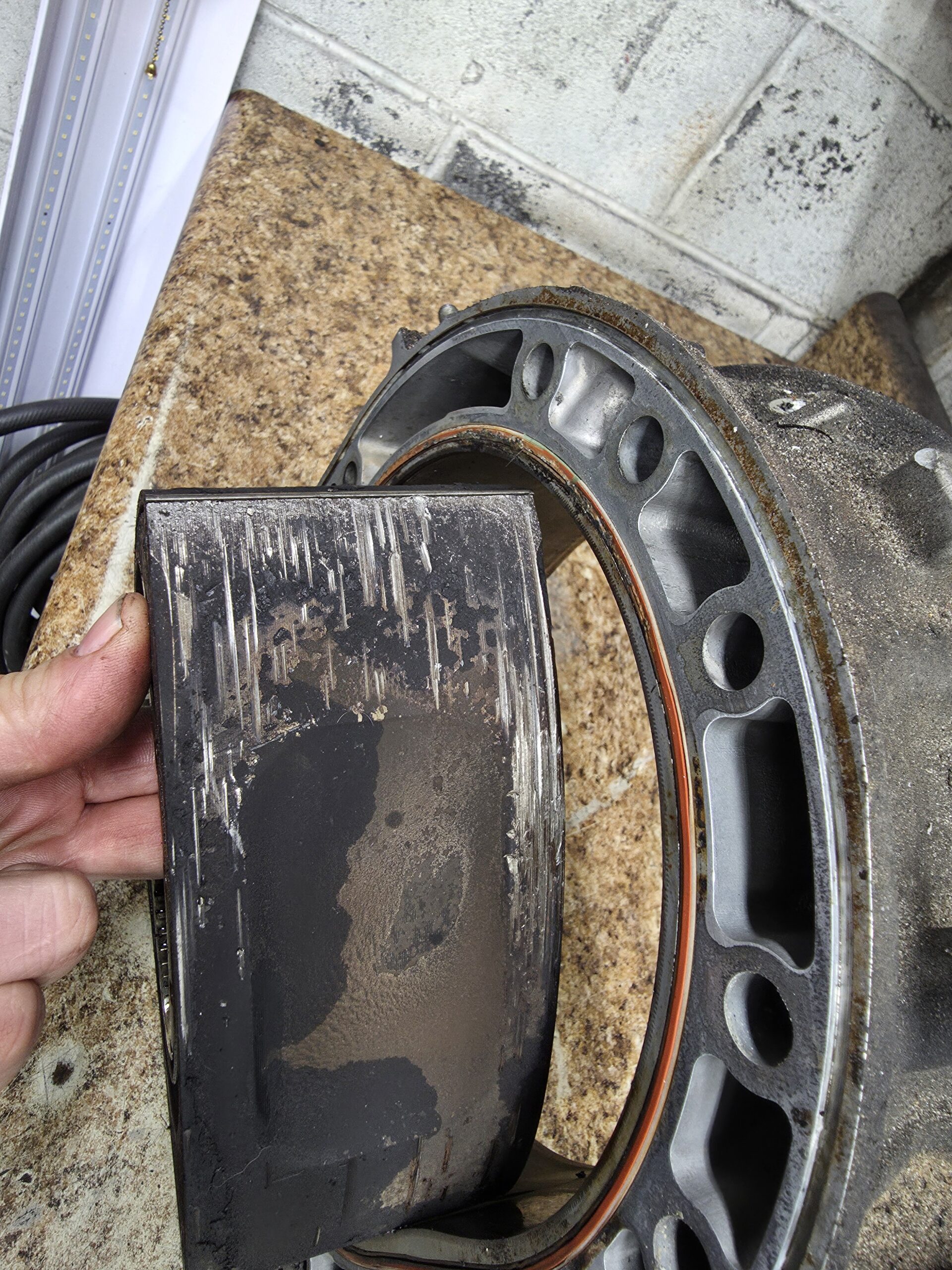 junk/damaged/defective rotor & rotor housing set for display, steampunk etc. This is an rx8 rotor housing and rotor that suffered broken apex seals.