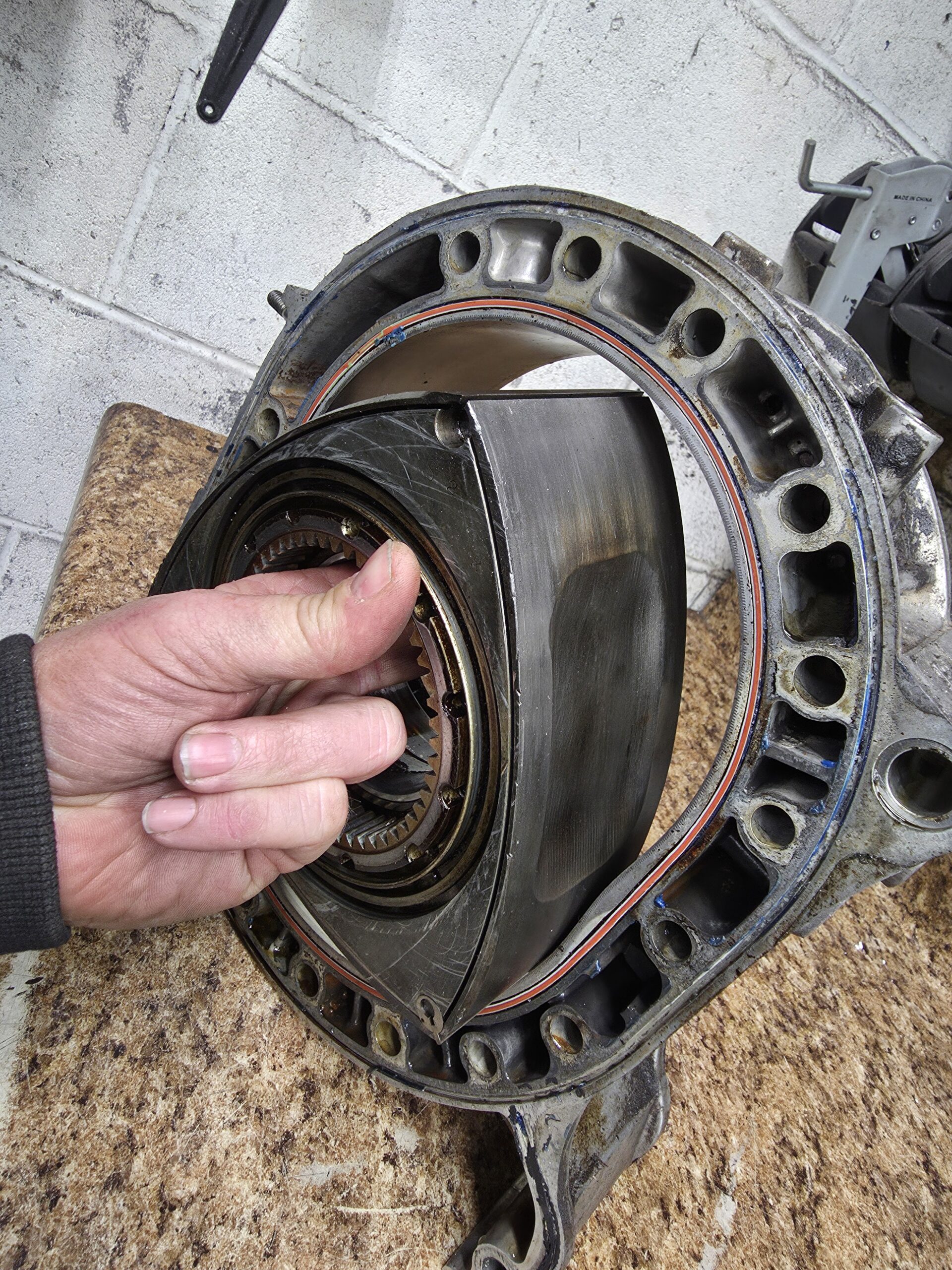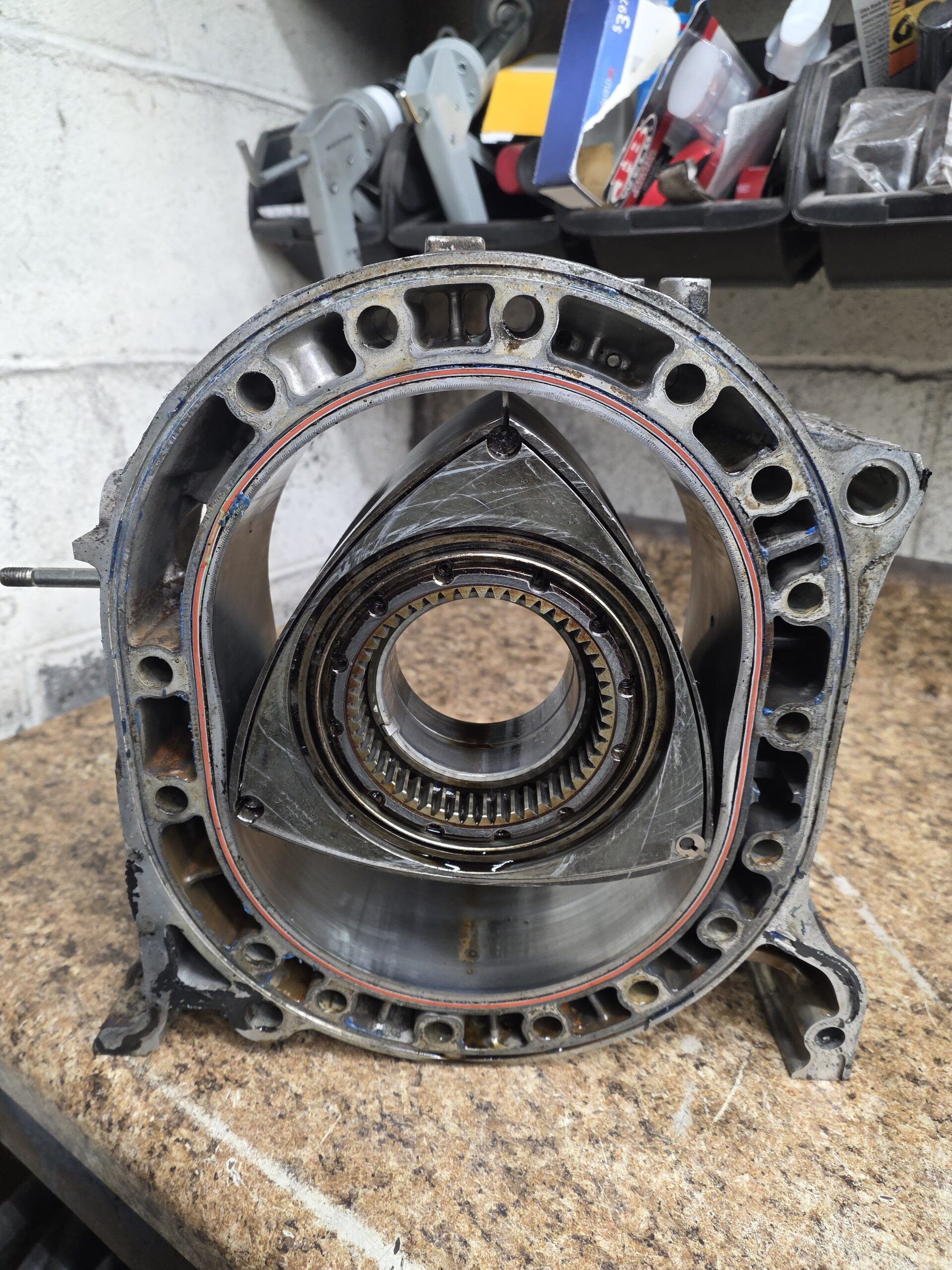 junk/damaged/defective rotor & rotor housing set for display, steampunk etc. This is an rx8 rotor housing and rotor that suffered a broken side seal.