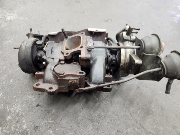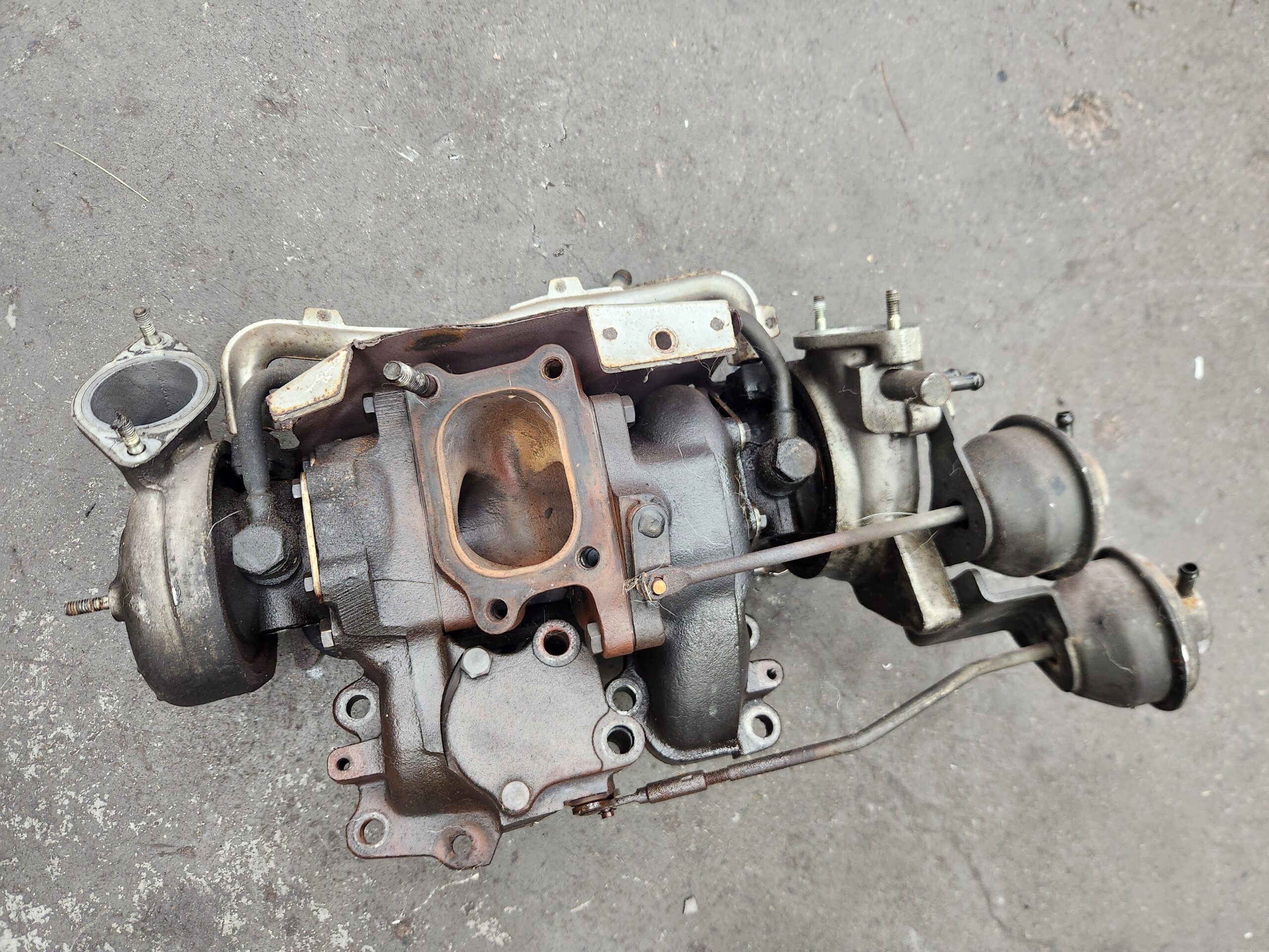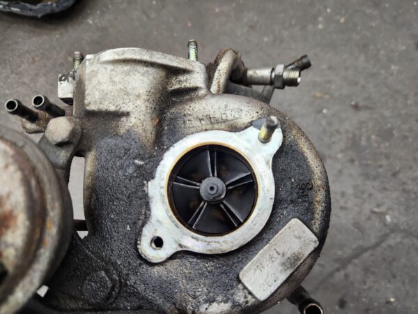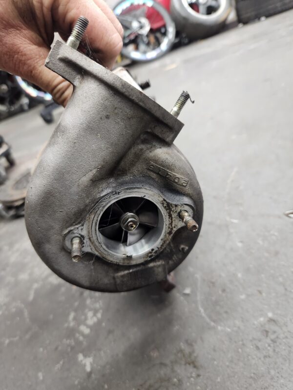 These were removed from a US 93 with about 100k miles. Engine had failed internal coolant seals but the owner said the turbos boosted normally without unusual smoke or problems. They were replaced during the build as a maintenance item. Both compressor wheels appear undamaged and spin normally with what I’d consider to be normal, average shaft play.