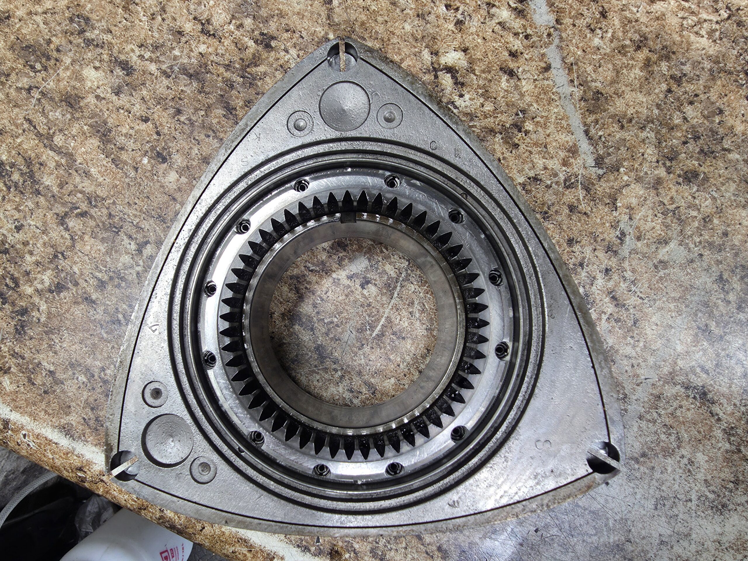 rx7 used engine rotor 89-95 turbo FD REW 9.0 compression. This is actually an FD REW rotor but crosses over to the earlier 89-91 s5 FC turbo engines (both share the same rotor weight and compression ratio).