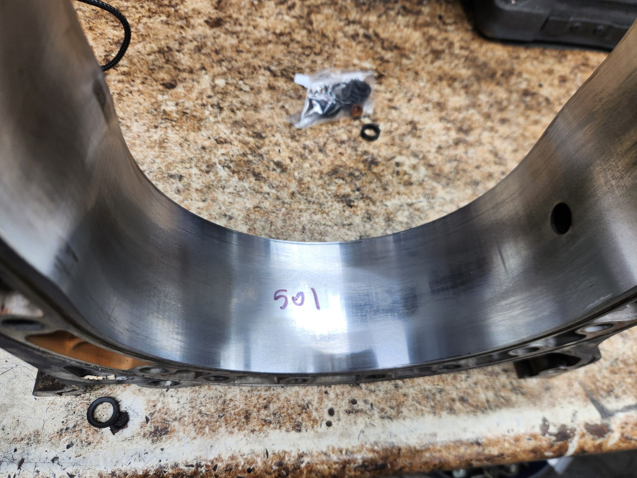 rx8 04-08 used engine rotor housing 501 (this is an internal ID number I chose to mark, which ensures that you get the exact housing pictured). Has normal edge wear, chrome flaking, and grooving common to used housings. has a small scratch beside the T plug hole. examine the pics closely to be sure you accept it’s condition.