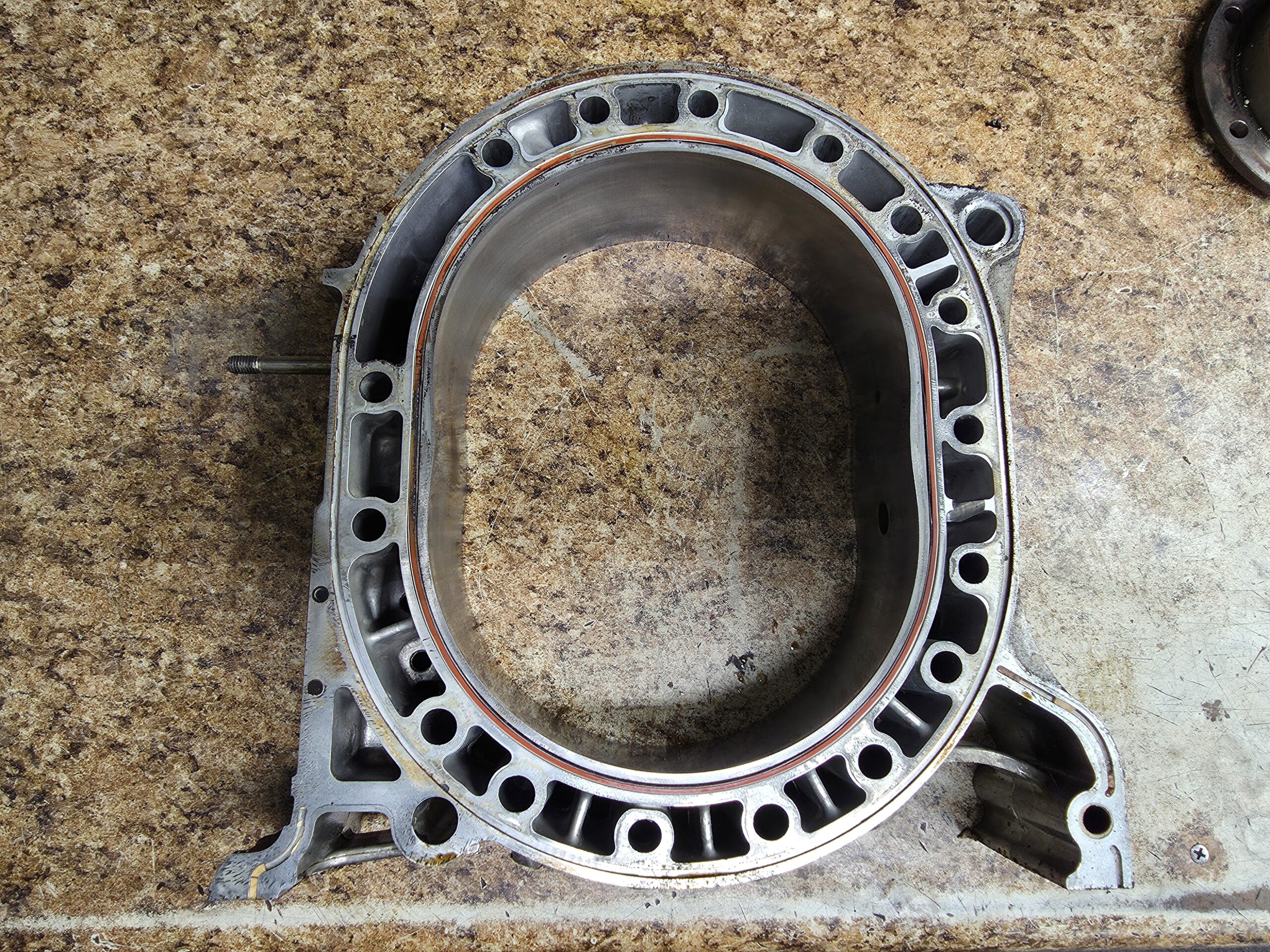 rx8 04-08 used engine rotor housing 639 (this is an internal ID number I chose to mark, which ensures that you get the exact housing pictured). Has normal edge wear, chrome flaking, and grooving common to used housings. examine the pics closely to be sure you accept it’s condition.