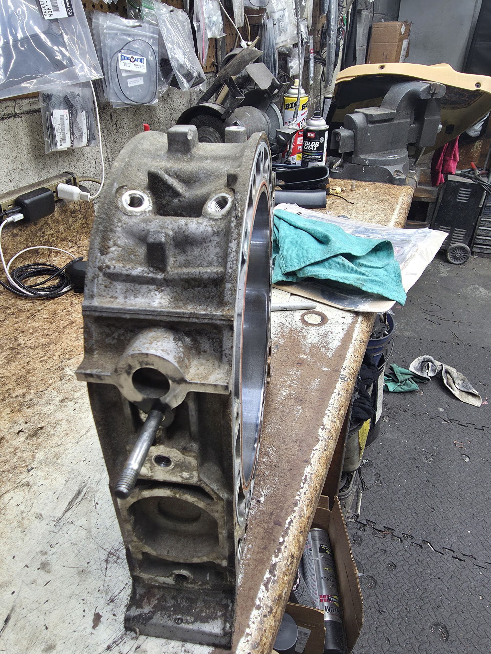 rx8 04-08 used engine rotor housing 941 (this is an internal ID number I chose to mark, which ensures that you get the exact housing pictured). Has normal edge wear, chrome flaking, and grooving common to used housings. examine the pics closely to be sure you accept it’s condition.